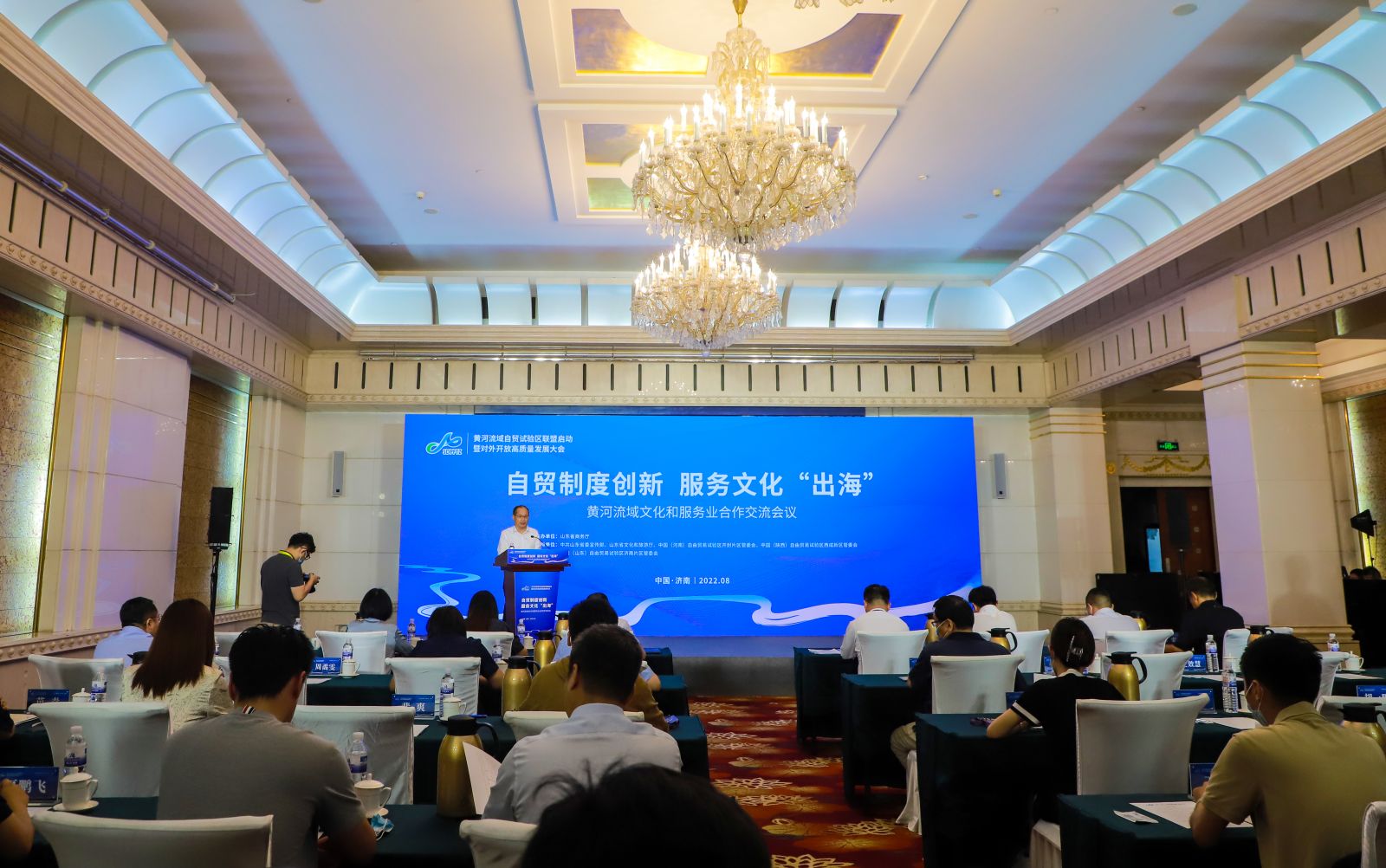 黃河流域自貿(mào)試驗(yàn)區(qū)聯(lián)盟啟動(dòng)暨對(duì)外開(kāi)放高質(zhì)量發(fā)展大會(huì)--黃河流域文化和服務(wù)業(yè)合作交流會(huì)2022年8月23日下午在山東大廈濟(jì)南廳舉辦。中國(guó)(河南)自由貿(mào)易試驗(yàn)區(qū)開(kāi)封片區(qū)管委會(huì)、中國(guó)(陜西)自由貿(mào)易試驗(yàn)區(qū)西咸新區(qū)管委會(huì)有關(guān)負(fù)責(zé)同志,山東省委宣傳部、山東省商務(wù)廳、山東省文化和旅游廳有關(guān)負(fù)責(zé)同志,以及濟(jì)南市有關(guān)部門(mén)負(fù)責(zé)同志、中國(guó)(山東)自由貿(mào)易試驗(yàn)區(qū)濟(jì)南片區(qū)管委會(huì)有關(guān)負(fù)責(zé)同志,開(kāi)封片區(qū)、西咸新區(qū)、濟(jì)南片區(qū)重點(diǎn)企業(yè)代表參加活動(dòng)。金諾國(guó)拍集團(tuán)總裁位琳參加大會(huì)。