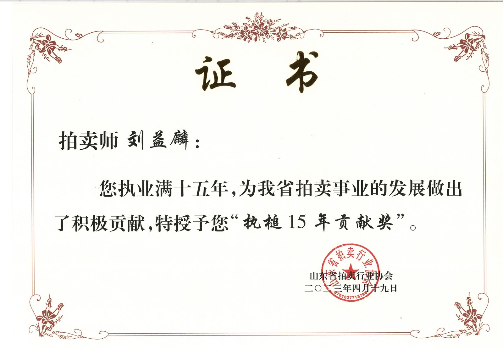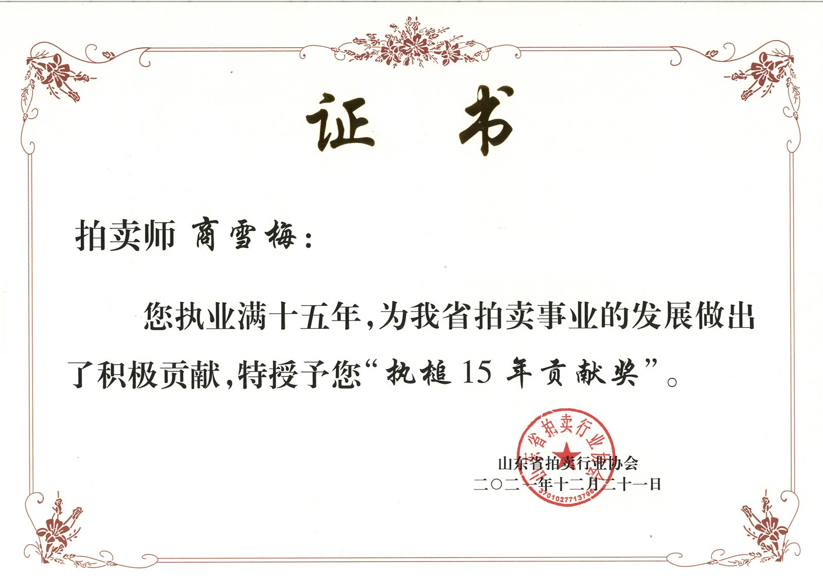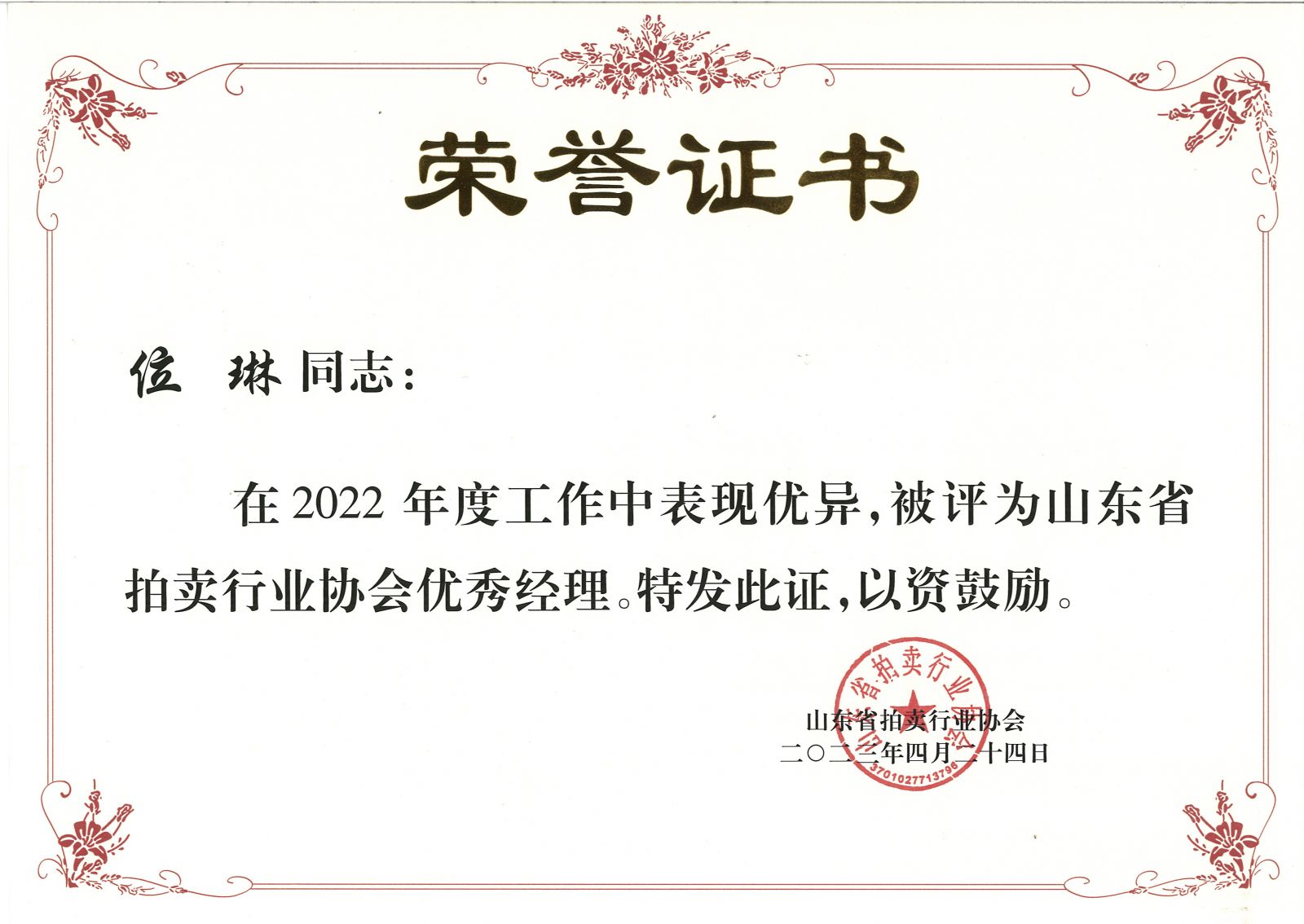 為表彰先進,樹立典范,進一步擴大拍賣行業(yè)影響力。近日,山東省拍賣行業(yè)協(xié)會向獲得省拍協(xié)2022年度先進單位和優(yōu)秀經(jīng)理及榮獲山東省“執(zhí)槌15年貢獻獎”的拍賣師頒發(fā)榮譽證書。