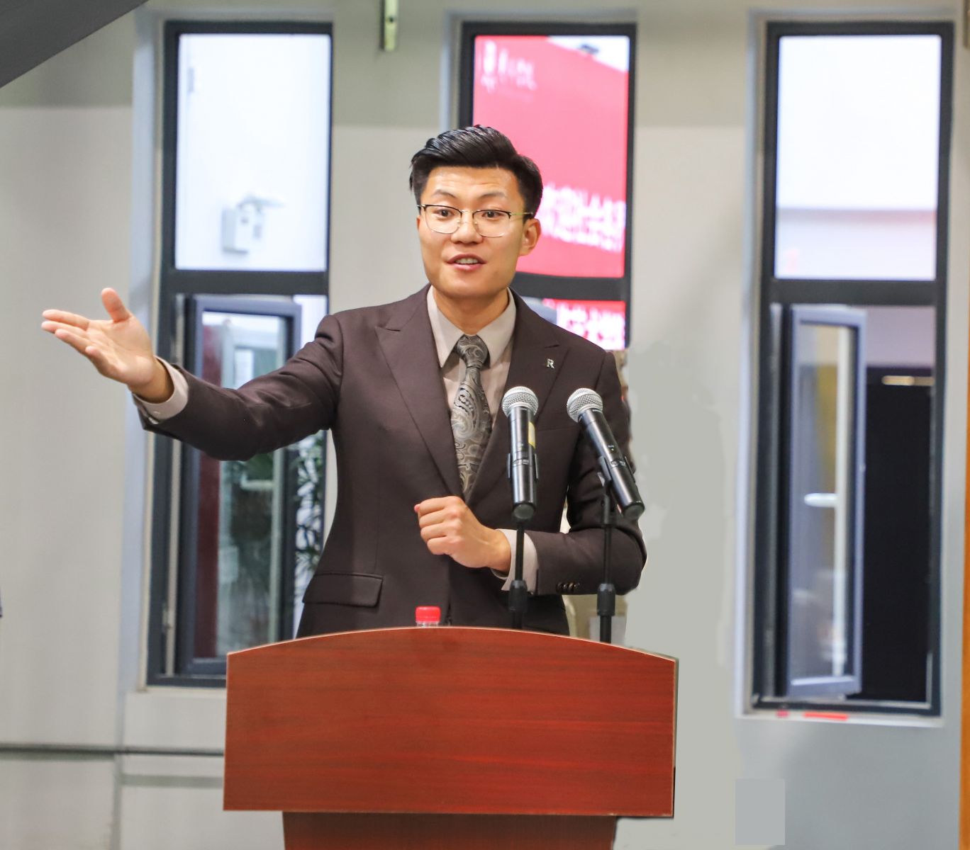 省新聯(lián)會副會長、沃爾德集團總裁、金諾國拍集團董事長商雪梅致辭。她表示,作為山財大99級校友非常榮幸參加山財大藝術學院第十屆藝術品拍賣會。這場競拍會的作品不僅是藝術學院優(yōu)良的教學成果,也是同學們幾年藝海作舟的良好展現(xiàn)。本次新階層走進山財大藝術學院活動,定位為“新階層·藝術行”助教助學公益活動,新的社會階層人士作為社會發(fā)展的重要力量,始終關注著文化藝術的繁榮與發(fā)展。本次拍賣會的舉辦,為藝術學院學生提供了一個展示才華、交流學習的平臺,匯聚了社會各界力量、共同推動文化藝術事業(yè)發(fā)展。同時沃爾德集團作為山財大藝術學院校企合作單位,將深化搭建校企合作平臺,將合作走深走實,實現(xiàn)校企合作共贏!