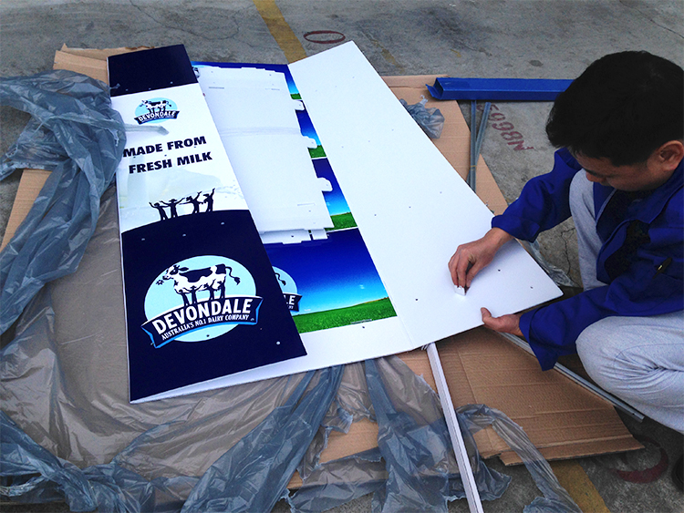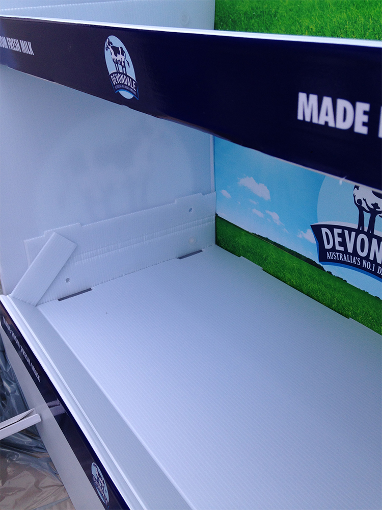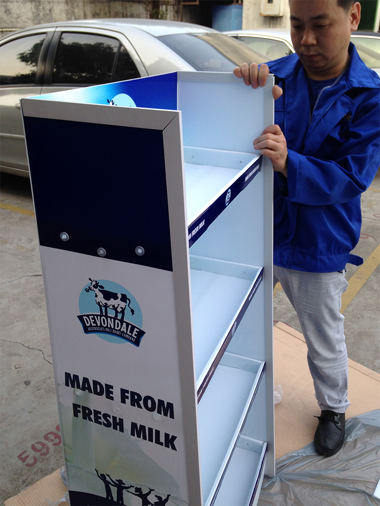 特點(diǎn):凸顯LOGO和品牌,更好的展示牛奶品質(zhì),來(lái)之天然牧場(chǎng)的牛奶更加健康。本展示架采用環(huán)保PP塑料板制作。采用紙貨架的組裝結(jié)構(gòu),因此具有非常強(qiáng)的移動(dòng)性。